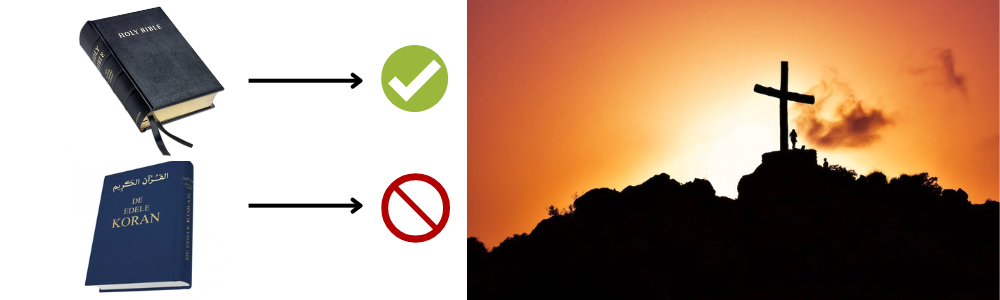 Dus de Bijbel komt volgens de Koran van Allah. Maar tegelijkertijd ontkent de Koran op een andere plek de kernboodschap van de Bijbel die leert dat Jezus gekruisigd zou zijn voor onze zonden:
