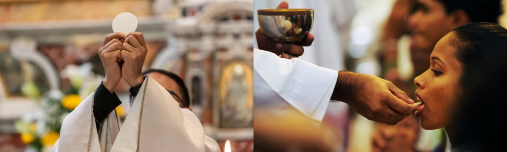 De Rooms-Katholieke kerk gelooft dat bij het vieren van de Eucharistie (Christenen noemen dit Heilig Avondmaal), het brood letterlijk veranderd in het lichaam van Jezus, en het bloed letterlijk veranderd in het bloed van Jezus. Ze geloven dus dat Jezus iedere keer weer letterlijk wordt geofferd (Bron). De Bijbel leert echter dat het brood en de wijn niet letterlijk Jezus zijn, maar ”symbool” staan voor het offer wat Jezus bracht aan het kruis.